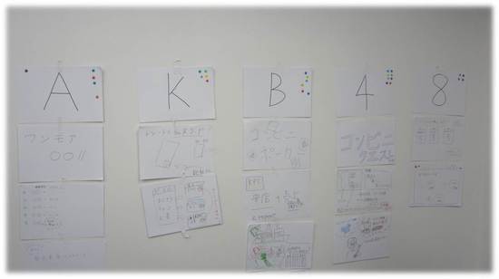 第二部、三部は、ゲーミフィケーションを使ってそれぞれ課題を解決するワークショップでした。二部は右肩下がりのコンビニをどう立て直すか、三部は業績の下降している会社をどう立て直すか、これを3、4人のグループで30分間それぞれ企画立案し、そのあと発表しました。私のチームは結果から言うと、5チーム中2位でした。チームの方達は、とある有名なWEB会社のN社で企画をやっている方々でした。そのこともあってか、ブレインストーミングの段階でこれでもかってくらい次々といろんな案が出てきました。あぁこれをブレインストーミングというのかと感心させられっぱなし。こんなに頭の回転力がいい人に会ったのは初めてかもしれません。それと同時に自分のバカさに改めて気づきました。ですが、そんな僕の意見も取り入れて企画を三人で作っていったのですが、ほんとにこんな意見を入れてもいいのかなと内心思っていました。ただ結果が2位だったので悪くはなかったのかなと思います。採点方法ですが、全員の投票で決めました。僕のチームはBチームです。
