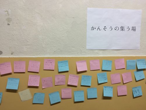 ▲かんそうの集う場。実際にはこの写真の2、3倍くらいの枚数のポストイットが貼られていた。